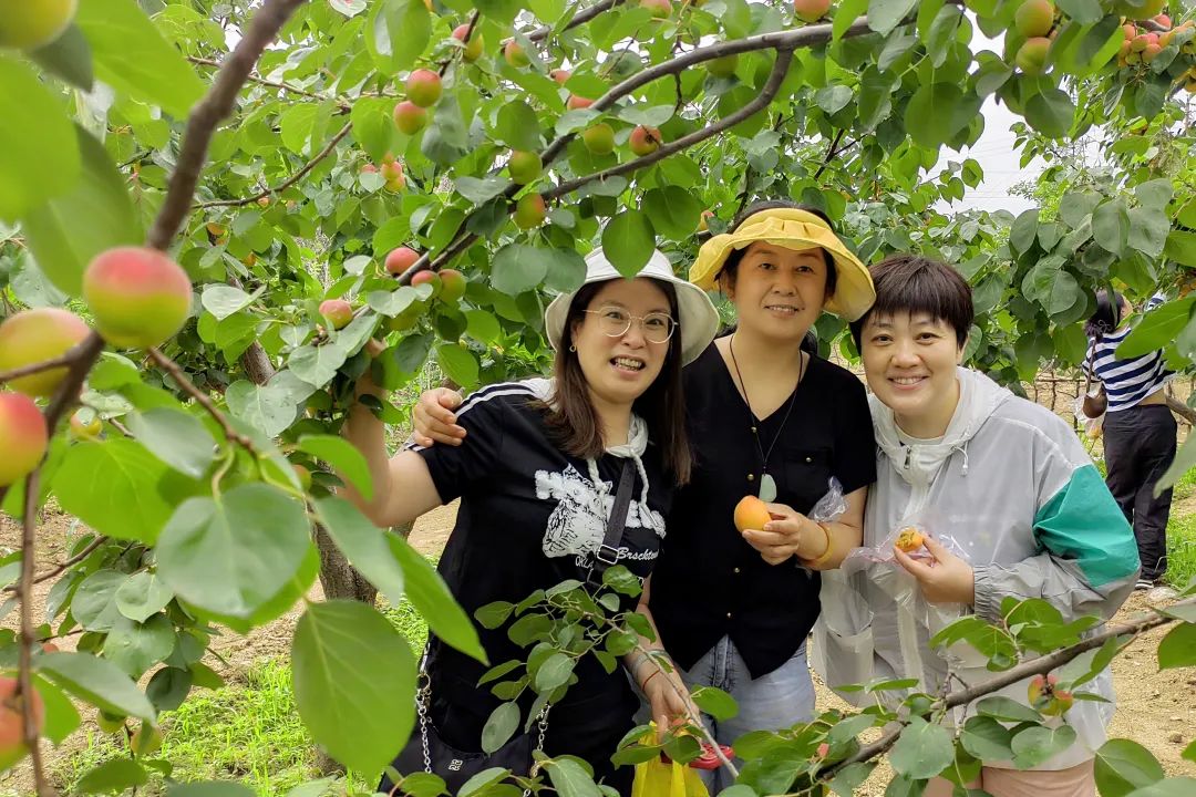 大家兴高采烈地穿梭在杏林之中,拍照、采摘、品尝,处处欢声笑语,洋溢着收获的喜悦。