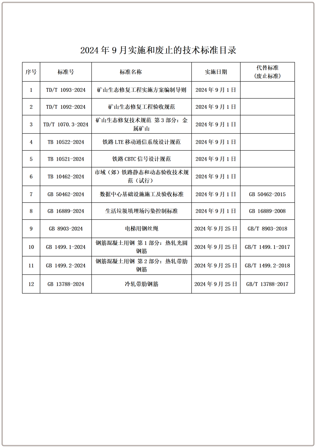 2024年9月实施和废止的标准规范目录如下,请大家根据工程实际需要积极学习落实相关新标准。