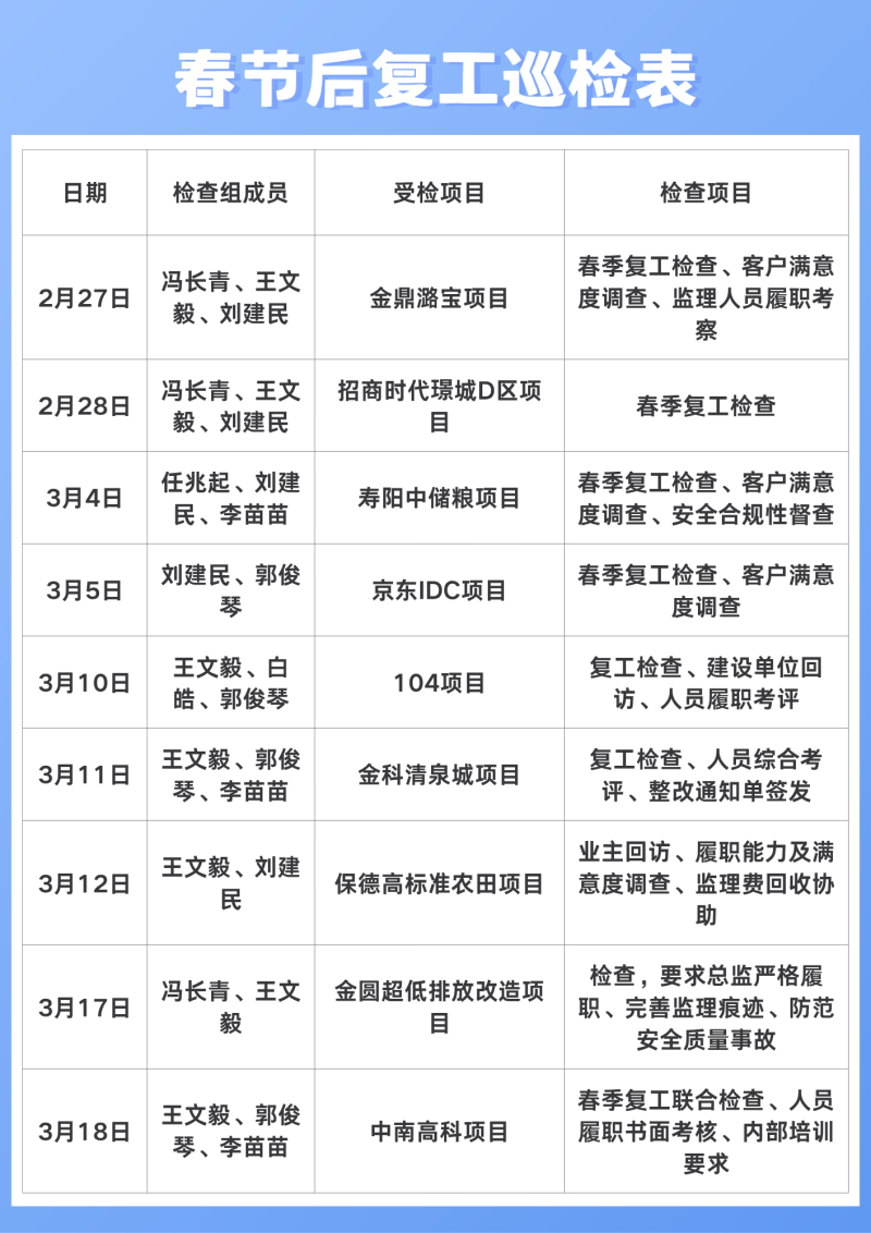春节后复工巡检通报(截至3月20日,共计9个项目)