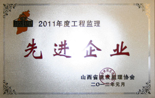 公司荣获“2011年度工程监理先进企业”荣誉称号