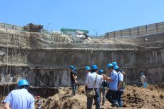 观摩学习分析会中,绿地中央广场项目总监卫东风简单介绍了项目概况及施工进展情况,总师办主任王文毅针对该项目深基坑的特点、难点,对基坑支护、降水、变形监测的设计方案、施工工艺及其监控要点等相关内容进行了详细讲解,项目监理部的同志介绍了实际施工过程中发生的质量安全隐患的处理方法。之后,项目部同志带领大家深入施工现场实地观摩,并对施工过程中的有关问题进行了讲解。最后,大家结合各自以往的实践,畅谈了对深基坑支护、降水、监测等方面的看法、认识和经验。