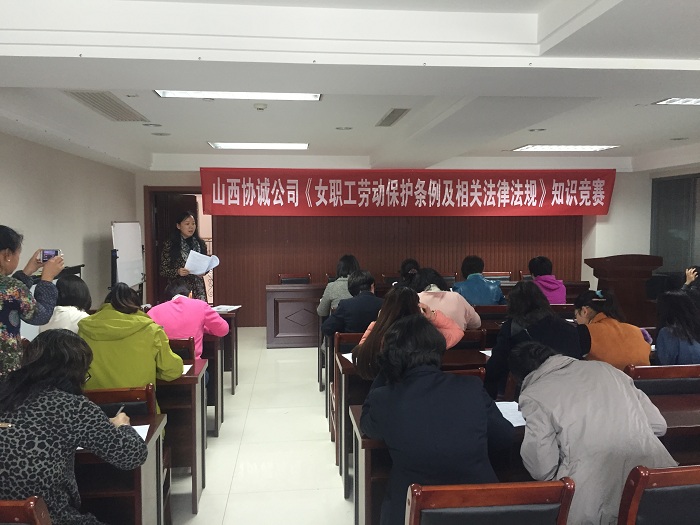 2016年10月26日下午,协诚公司工会举办了《女职工劳动保护条例及相关法律、法规》知识竞赛现场笔试答题活动,全公司43名女员工参加了这次竞赛答题活动,共收回试卷43份,经最终判卷打分,平均分数达到98分。通过本次答题竞赛活动,使公司的女职工们既学习、了解了《山西省女职工劳动保护条例及相关法律法规知识》,又增强了女职工的自我保护意识,达到了预期的效果。