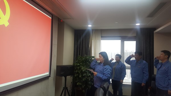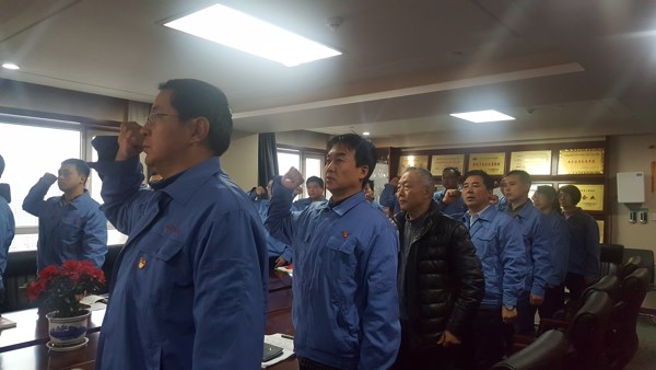 最后全体党员、预备党员面向党旗重温入党誓词。