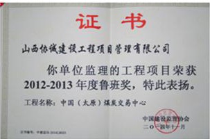 公司监理的中国(太原)煤炭交易中心荣获“2012-2013年度鲁班奖” 公司监理的中国(太原)煤炭交易中心项目荣获“2012-2013年度鲁班奖” 2013年荣誉 2016年04月07日 0 点赞 0 评论 2840 浏览