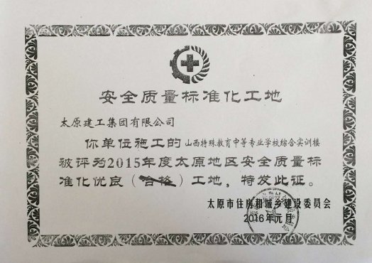 公司监理的“山西特殊教育中等专业学校综合实训楼”荣获“太原市2015年度安全质量标准化优良工地”